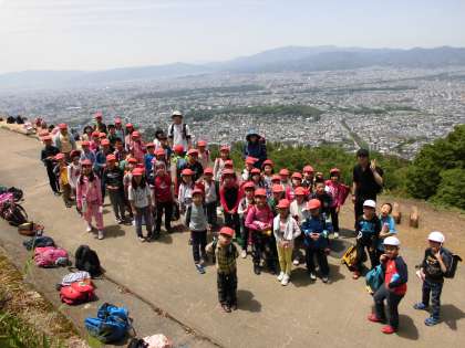 明け方まで降っていた雨も上がり、すがすがしい快晴の中,春の遠足に行きました。3年生の行先は,大文字山です。観月橋から京阪電車とバスを乗り継ぎ登山道まで行きました。登山中はグループで声を掛け合ったりして、みんなで登りきることができました。山道では日頃自分たちの住んでいる街では目にすることのない自然を見つけたり、他の登山者に大きな声で挨拶ができたりと多くの発見と収穫がありました。