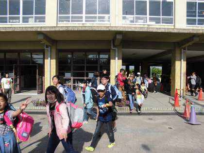 快晴のもと,6年生が元気に出発して行きました。