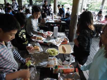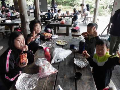 朝の集いの後はパックドッグです。ここでの初めての野外炊事第1弾です。