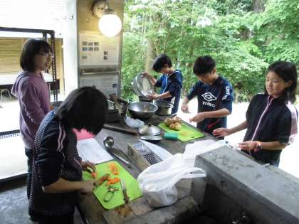 次は火おこし体験で得た火を使ってのカレー作りです。これまでにも学校で作り方を事前に学習してきた子どもたち。