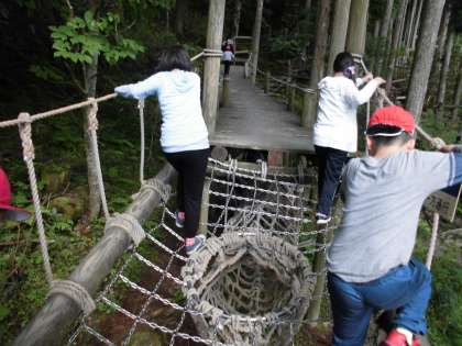 そのあとは,みんな楽しみにしていた「冒険の森」での活動です。学校のアスレチックもいいですが,山の家のアスレチックは規模も大きくて,とても楽しめました。