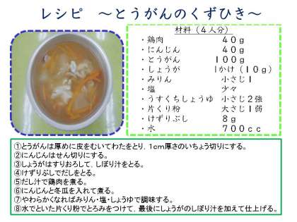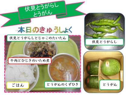 伏見とうがらしと冬瓜のおススメ給食レシピをのせてみました。