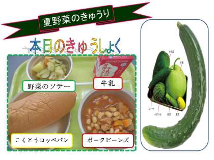 今日の野菜のソテーには「きゅうり」が入ってました。