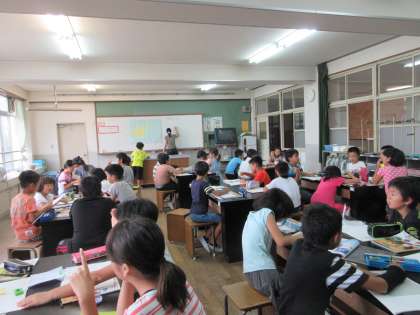9月13日(火)3校時と4校時それぞれ1組と2組が理科室で,「星や月の動き」の学習をしました。