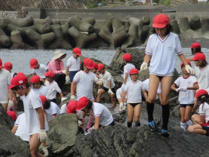 子どもたちは,ヤドカリやヒザガライ,フナムシ,カメノテ等,珍しい海辺の生物を見つけていました。