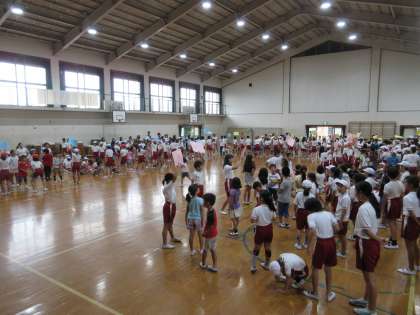 9月28日(水)2校時,体育館(多目的ルーム含)で運動会に向けての児童集会を行いました。