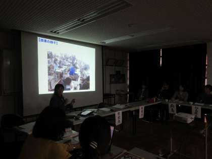事後の研究会では本校教職員に加え,向島地域四校の2年生担任が集まり,授業の視点に沿って話し合いが進みました。