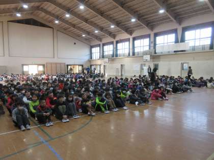 今日から二月です。校長先生から今月の学校だよりの記事についてのお話がありました。