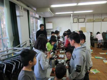 2月3日(金)5・6校時,4年生の社会科で「古くから受けつがれてきた産業のさかんな宇治市」の学習で,地域の製茶業の方に来ていただき宇治茶について学ぶ活動を行いました。「お茶の種類」「お茶のできるまで」「お茶のおいしい入れ方」等を教えてもらいました。そして煎茶の荒い茶葉を焙煎してほうじ茶をつくり実際に淹れて飲んでみました。次回は,茶歌舞伎の取組を行う予定です。