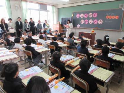 記念撮影のあと,それぞれの教室に入って担任の先生から子どもたちへ,そして保護者の方へお話がありました。