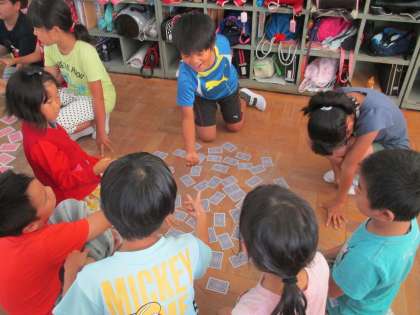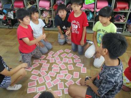 報告会の後の中間休みになかよし遊びがありました。中では,みんなで神経衰弱をしました。順番を低学年からにしたり,カードをめくってあげたりするなど,みんなが楽しめるようにできました。