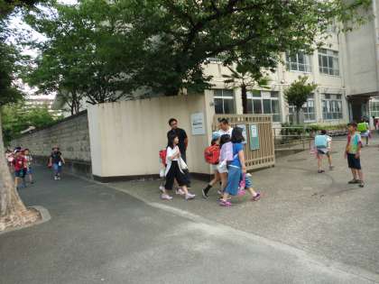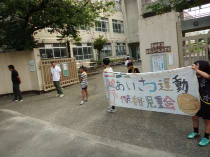 見守り隊の方々や先生も一緒に挨拶をしています。