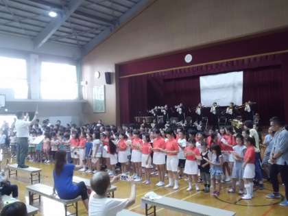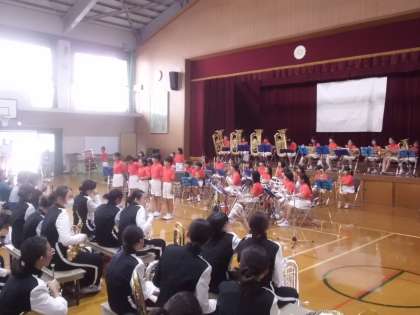 向島二の丸小学校からは,児童会のアピールと金管バンドクラブによる