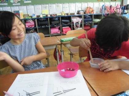 お箸の持ち方を学習した後は,