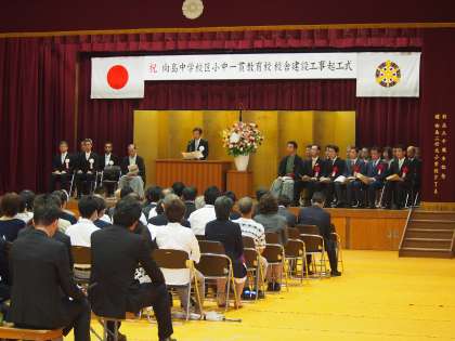 9月7日(木)午前11:00より,本校体育館にて「向島中学校区小中一貫教育校校舎建設工事起工式」がありました。京都市長様,教育長様をはじめ100名以上の方々にご参列を賜り,起工式は盛大に執り行われました。