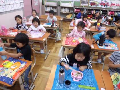 1・2年生もおいしく,お弁当をいただいています。