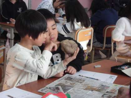サツマイモを手に取って,みんなじっくりと観察していました。