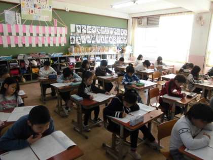 冬休みが明けて,子どもたちは元気に学校生活を過ごしています。さっそく「プレジョイントプログラム確認テスト」を行いました。これまで学習してきたことがどれだけ定着しているかを確かめます。最後まで粘り強く問題に取り組む様子が見られました。これから何日かに分けて実施していきます。