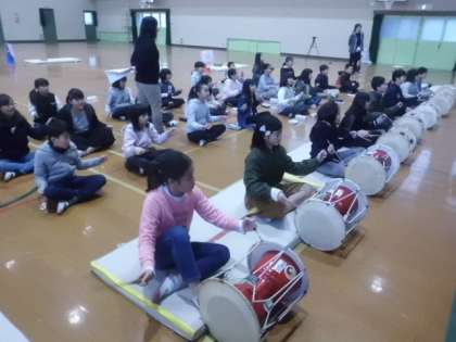 その後,朝鮮半島の伝統音楽である,チャンゴの体験をしました。