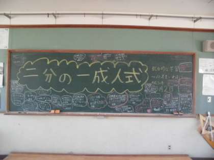 2日(金)に参観で2分の1成人式を行いました。1年を振り返り,言葉や詩の群読,合唱,リコーダー演奏など練習してきました。自分たちの成長を保護者の方に伝えることができました。