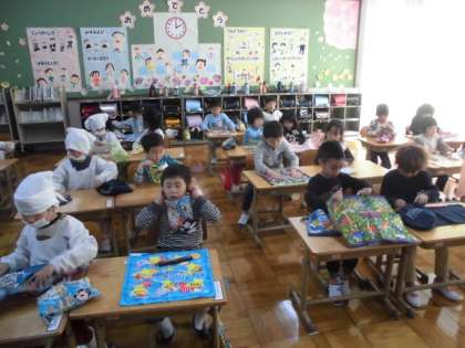 給食を食べるときに気をつけることや,準備の仕方を学びました。
