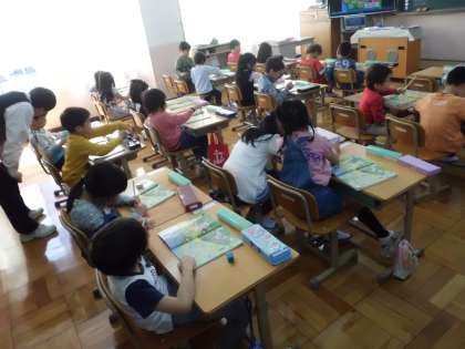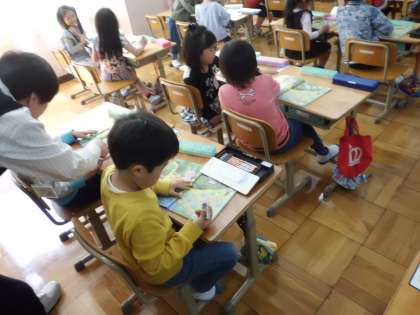 教科書を見ながら楽しく学習します。
