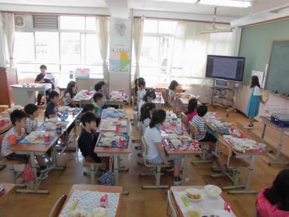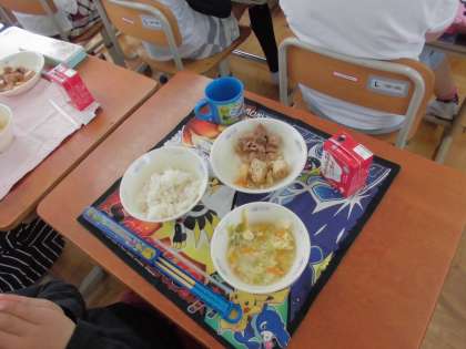 午前中の授業を終えて、お待ちかねの給食時間です。