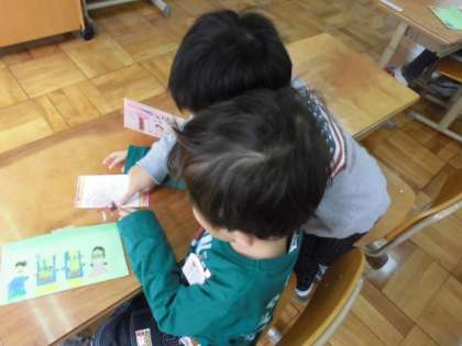 じっくりと,一文字一文字読んでいる姿が見られました。