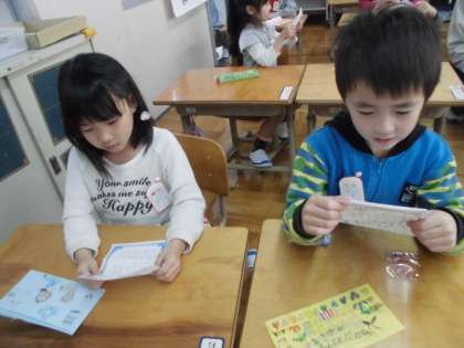 「先生!手紙が入ってる〜!」と,大喜びの1年生。