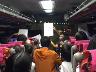 バスの中でもレク係が中心になって大盛り上がり♩