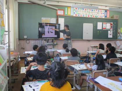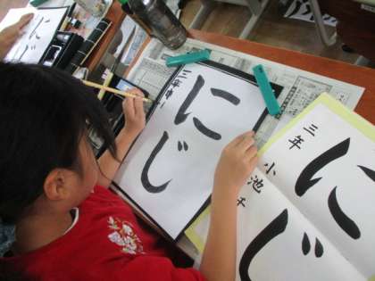 今日の書写の学習では「ひらがな」に挑戦しました。これまで習ってきた「漢字」とは,少し筆使いが違っていましたね。