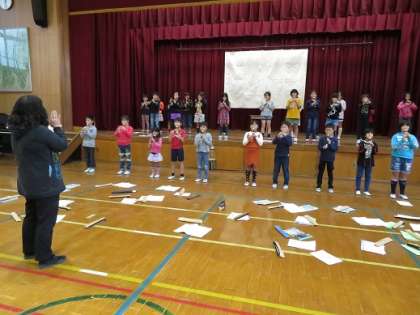 学習発表会にむけての体育館練習が始まりました。セリフや歌の声量、リコーダーの音量も教室練習のときよりも上げていかなければなりません。