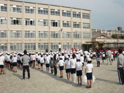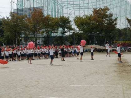 初めての小学校の運動会で戸惑っている1年生もいましたが,2年生から6年生がしっかりお手本を示してくれました。