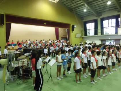 向島中学校と向島中学校地域の3小学校が集まり,合唱やブラスバンドの演奏会をしました。