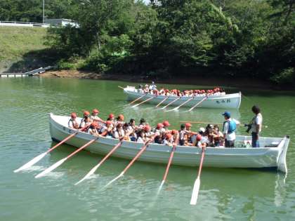 クラスで力を合わせてカッターをこぎますが,なかなか思うようにいかず,最初は苦戦しました。しかし,コツをつかみ動き始めるとすいすい動き,歓声があがりました。