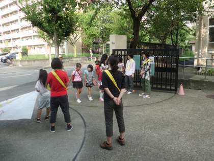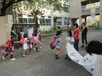 登校してきた子どもたちに,気持ちよく笑顔で挨拶しています。