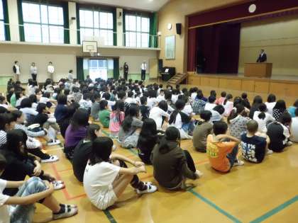 校長先生より,この連休中にバレーボール、タグラグビー、陸上の試合等で活躍した子ども達の紹介がありました。