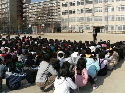 その後,校長先生からハイチでの地震のことや,なぜ地震が起きるのかということを聞きました。また,