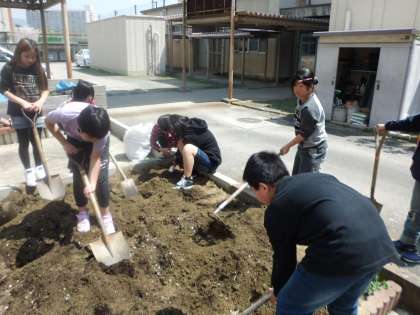 6年生の畑では、ジャガイモ・ホウセンカ・ミニトマトを育てています。
