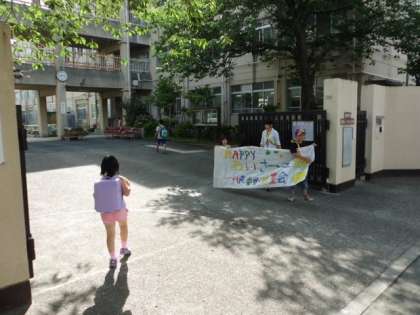 地域の「見守り隊」の方も,明るく声をかけてくださいます。