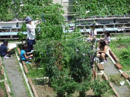 4年生は「すくすく畑」の作物の観察です。