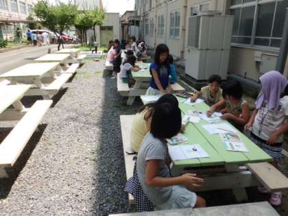 仲良し広場で,観察ノートをかいています。