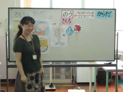 身体測定前にからだや心の話をしていますが,今日,1・2年生の測定前には