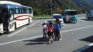 刀根パーキングエリアに到着しました。全員元気にしています。予定よりも早めの到着となりました。次の到着地は徳光サービスエリアです。海を眺めながらのお弁当が楽しみです。
