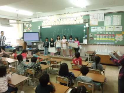 絵をつかったり,クイズにしたりして一生懸命に伝えました。