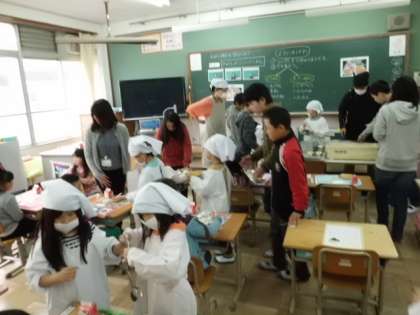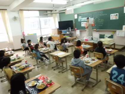6年生のお兄さんやお姉さんに手伝ってもらって,自分たちで配膳しました。