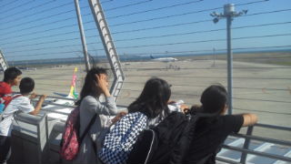 中部国際空港(セントレア空港)で,旅客機の発着を見学しています。