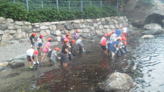 磯観察の様子です。海のそばでの活動ですから,生き物の生態を観察する絶好のチャンスです。