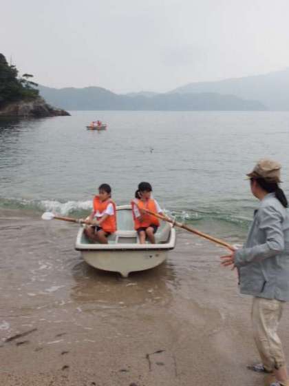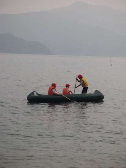 海の活動,グラスボート,カヌーの様子です。なかなか前に進まず大変でした。転覆した船もありました。