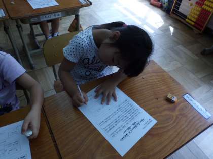 教室で考えました。
